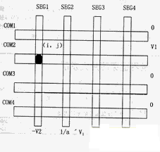 ͼ1ÖÐÑ¡ÔñµãΪ(SEG1,COM2)£¬ÒÔϼò³ÆÎª(1,2)¡£ÏÖµÚ2ÐÐÊ©¼ÓV1µçѹ£¬ÆäÓà¸÷Ðеçѹ0V;µÚÒ»ÁÐÊ©¼Ó-V2µçѹ£¬ÆäÓà¾ùΪ·ÇÑ¡Ôñµçѹ1/a'V1.½ÓÏÂÀ´·ÖÎö¸÷µãµÄµçλ²î£¬¼´Ðеçѹ¼õÈ¥Áеçѹ¡£